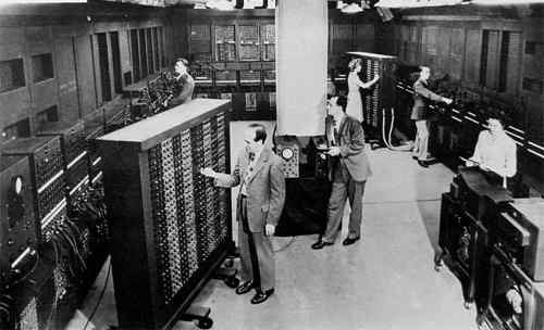 L'ENIAC, peut être reprogrammé pour résoudre, en principe, tous les problèmes calculatoires. Il est précédé en 1941 par le Z3 allemand, une machine programmable mais encore électromécanique (utilisation de relais), et par la série de calculateurs britanniques Colossus. L'ENIAC, comme les Colossus, utilise des tubes à vide..